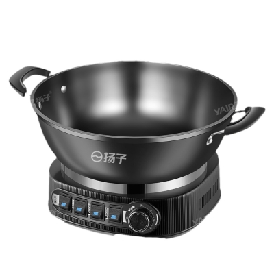 Yangzi Uncoated Multifunctional Electric Wok Household Electric Wok Cast Iron Electric Wok Steaming and Stewing Integrated Hot Pot Wok